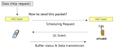 In UL verfügt das UE über keine dedizierten Ressourcen, um direkt zu übertragen, wenn neue Daten von einer höheren Schicht im Puffer eintreffen.