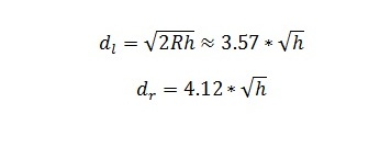 dᵣ = 4,12 × √h para el alcance del servicio del horizonte radioeléctrico