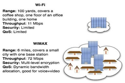 WiMAX no sólo ofrece un alcance y un rendimiento exponencialmente mayores que Wi-Fi (técnicamente hablando, 802.11b, aunque Las nuevas variantes de 802.11 ofrecen mejoras sustanciales con respecto a la variante «b» de 802.11), también ofrece seguridad y calidad de servicio (QoS) de nivel de operador.