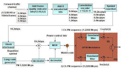 - Symbol repetition makes symbol streams at different rates adapted to those at the rate of 19.2k. The original symbol stream at the rate of 19.2Kbps will not be repeated, 9.6Kbps symbol stream will be repeated once, 4.8Kbps symbol stream will be repeated twice…. Then, after the interleaving, long code scrambling, spreading, etc., the transmitting power of repeated bits is reduced during the transmission. Thus, variable rates can be achieved and the system capacity be increased.