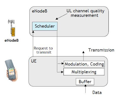 Non esiste un canale dedicato assegnato a un UE. Le risorse di tempo e frequenza sono condivise dinamicamente tra gli utenti in DL e UL. Lo scheduler fa parte del livello MAC e controlla l’assegnazione delle risorse uplink e downlink. - Multiplexing/demultiplexing della PDU RLC