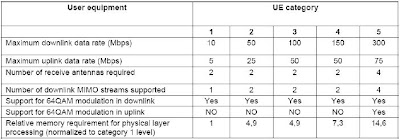 - Opgemerkt moet worden dat sommige mogelijkheden buiten de UE-categorie-informatie vallen. De Inter-RAT-mogelijkheden, zoals de ondersteuning van EV-DO of GSM, enz., worden bijvoorbeeld niet gespecificeerd als onderdeel van de UE-categorieën.