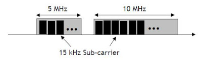 - For the 5 MHz, there are 512 sub-carriers of 15 kHz. The total band is 7.68 MHz. It is larger than the 5 MHz band!