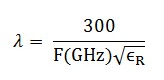 Bu TEM Dalgaboyu dönüştürme hesaplayıcısı, bağıl geçirgenliği εr olan bir ortamdaki bir sinyalin dalga boyunu (λ) belirler. F frekansı GHz cinsindendir ve formül, 300’ü (saniyede milyon metre cinsinden ışık hızı) frekansın çarpımına ve εr’nin kareköküne bölerek dielektrik malzemelerdeki dalga hızının azaltılmasını açıklar.